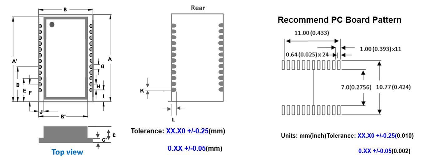 | A | 16.5 ± 0.25 | B | 10.3 ± 0.25 | C | 4.1 Max | C' | 0.8 ± 0.05 |